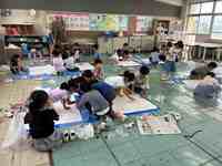 何かと思ったら、1年生がグループごとに協力して絵を描いています。