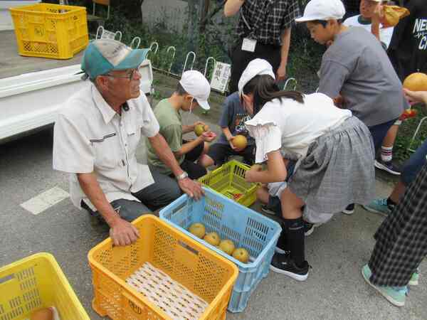 採った梨は町田農園さんに預かっていただき、時期を見て、給食で食します。