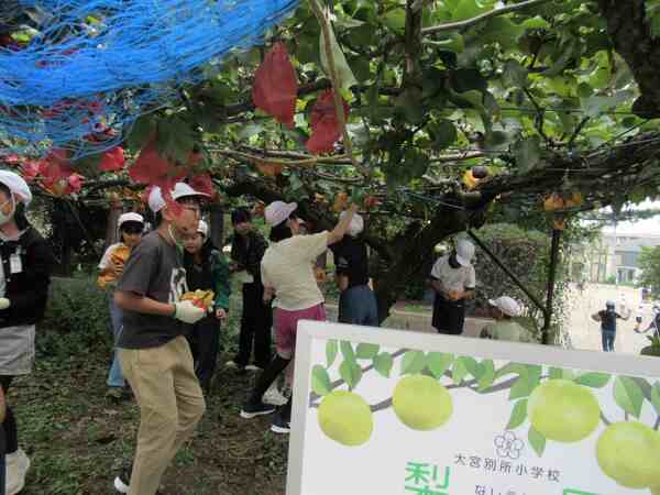 本校の梨を収穫しました。
