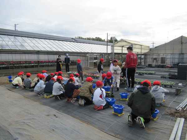 1年生は近くの大木園芸さんにパンジーとアリッサムを分けていただきに(買いに)行きました。