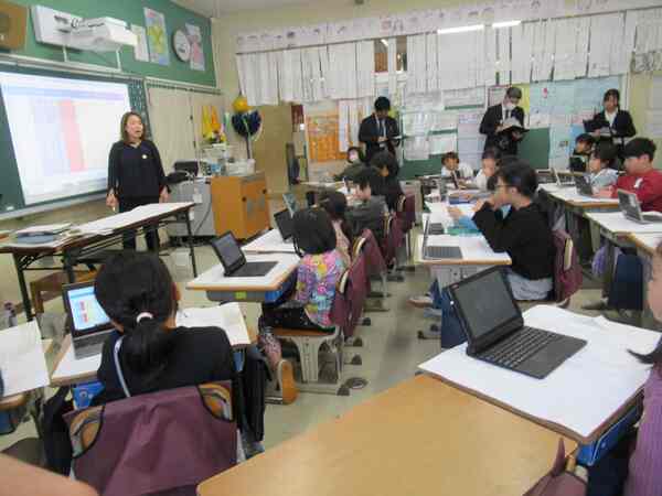 全員が最初からタブレットを開き、一斉の指導もあれば、個人個人でそれぞれ課題に向かっていく学習活動も見られました。一人ひとりが主体性をもって学んでいました。