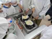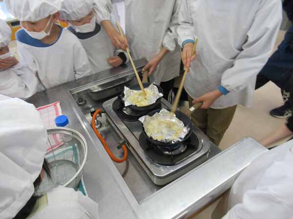 校長室向かいの家庭科室では、みんなで調理をしていました。