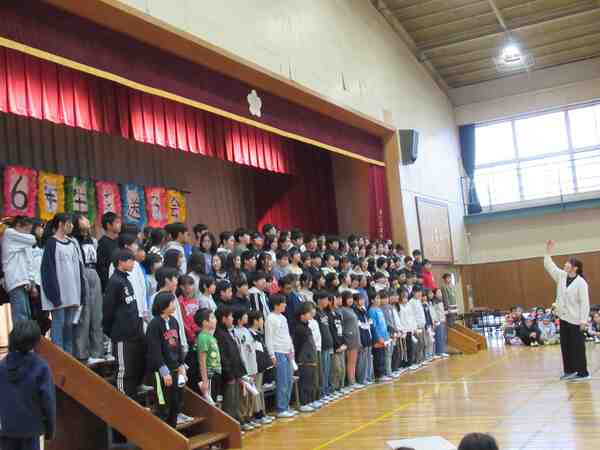 最後は6年生からの歌と手作りぞうきんのプレゼント。