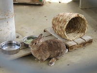 学校のアイドル、うさぎの「こんにゃく」もいつもは職員室にいますが、今日はウサギ小屋の中で広々のんびりしていました。