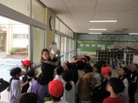 廊下を歩いていると2年生が保健室の前や昇降口、みんなのトイレのあたりでなにやら担任の先生と話していました。みんなのトイレを見学すると、こんなにたくさんの設備があるのだと感心する姿がありました。昇降口では、このドアの奥にAEDがあるんだよと担任の先生から説明を受けている子どもたち。みんな真剣に聞いていました。