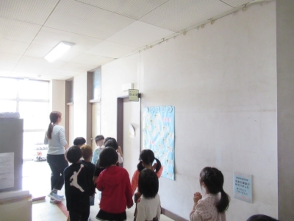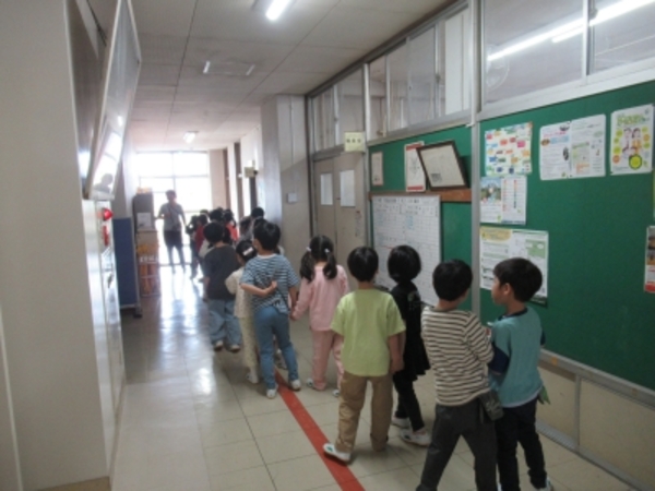 今日は、職員室にいると授業中にもかかわらず廊下からかわいらしい声が。そこには、1年生が担任の先生と大宮別所小学校の校舎の中を探検していました。今度、2年生のお兄さんお姉さんといっしょに行う学校たんけんの下見のようです。職員室や放送室を見て興味津々でした。