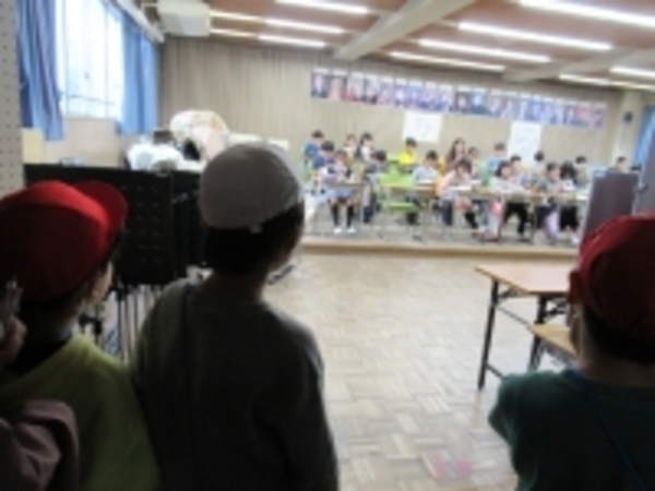 今日は、2年生が1年生をつれて校舎内を案内してくれる「学校たんけん」がありました。もうすっかりお兄さんお姉さんになった2年生は、1年生にやさしく話しかけ、校舎内のいろいろな場所を教えてくれました。