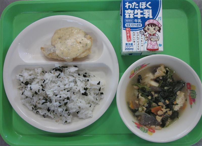☆今日の給食はさいたま市友好都市福島県の郷土料理給食です。こづゆは「福をすくう」という意味も込められ、お正月や婚礼の席などハレの日の料理として親しまれてきたそうです。舞茸の風味豊かなご飯との相性は言うまでもありません。さばもふっくらサクサクに揚がっていて美味でした。