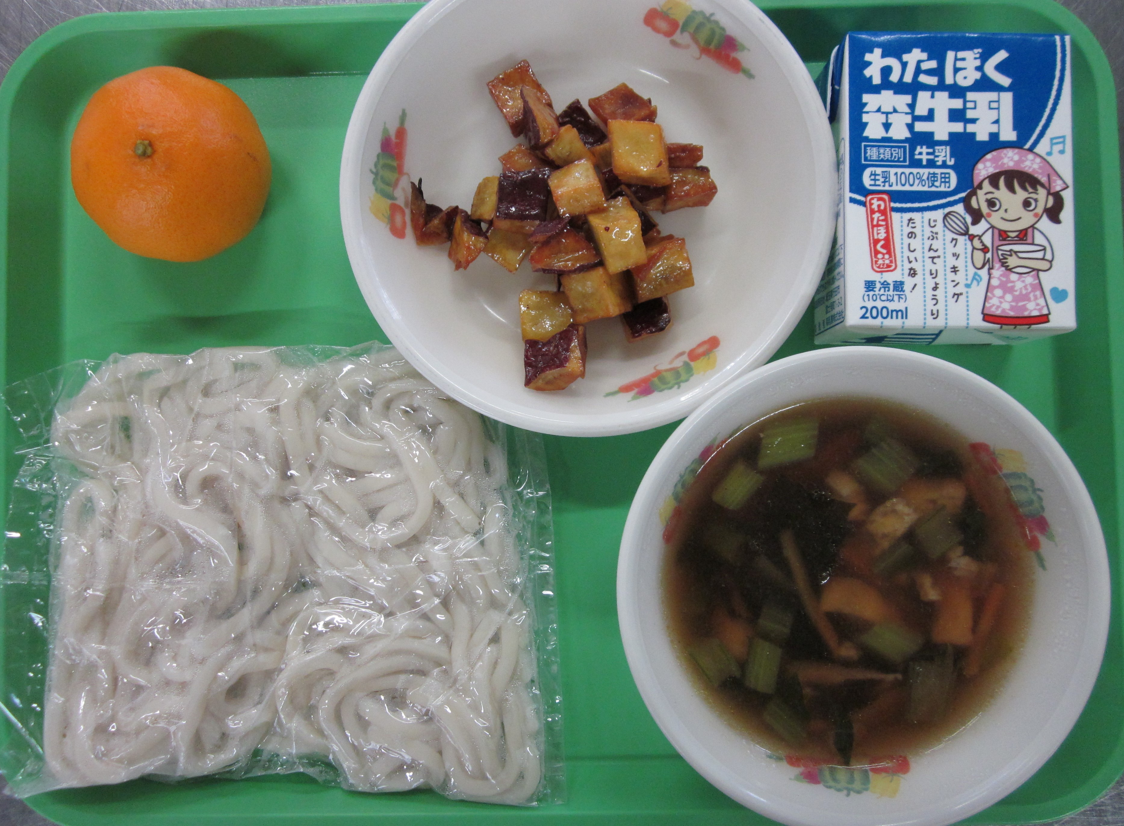 ☆今日は旬の果物「ぽんかん」でした。さわやかな酸味がありおいしかったです。キャラメルポテトは、カリカリに上がっていて食感も楽しめました。きつねうどんは、油揚げと具材に味がしみ込んでいて、うどんがつるつる進みました。