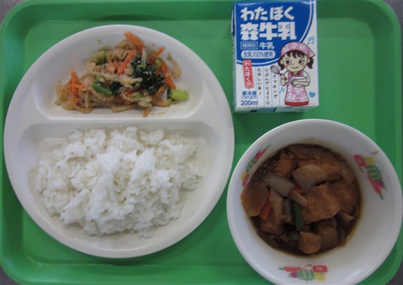 ☆給食週間に自分たちで選んだ給食をみんなで残さず食べよう!という取組でアンケート第1位の給食です。どれも人気のメニューだけあって、とってもおいしいです。海藻の食感、ポトフの旨味、あげパンののふわっとした甘さが絶妙にマッチして、食べる手が止まりません。みんなの「好き!」がつまった給食を、今日も感謝しながらいただきましょう!