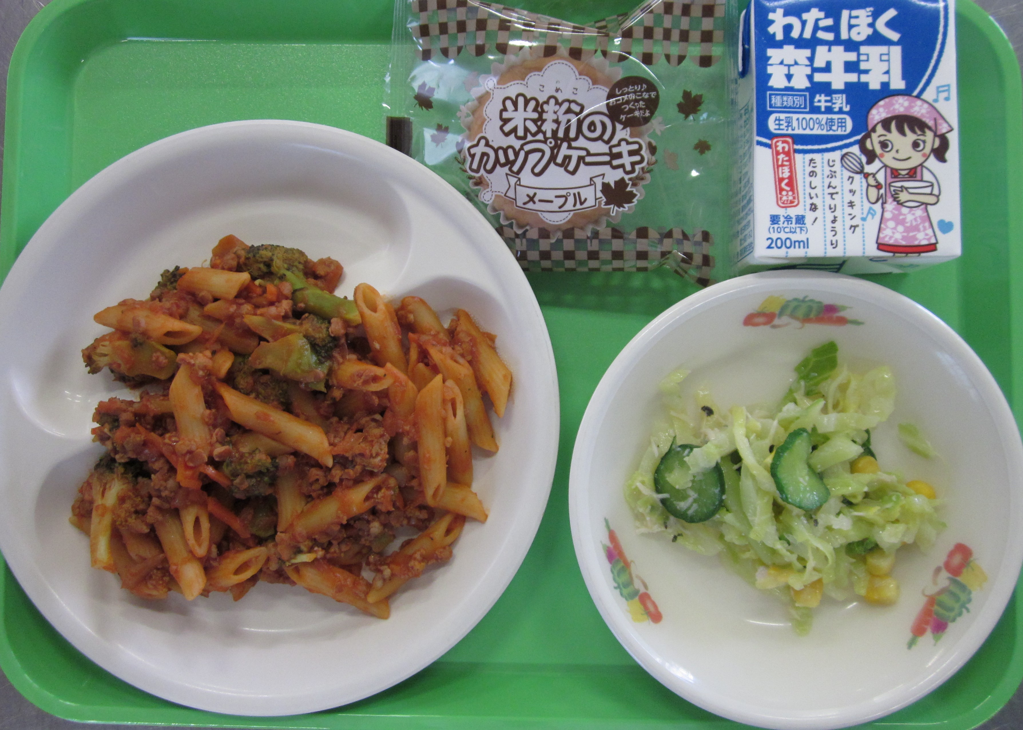 ☆今日はれんこん、ブロッコリーを使ったミートソースのペンネです。ミートソースにれんこんにブロッコリー!?と思う方もいるかもしれませんが、とても合います。サラダもバジルの風味がしてとてもおいしかったです。