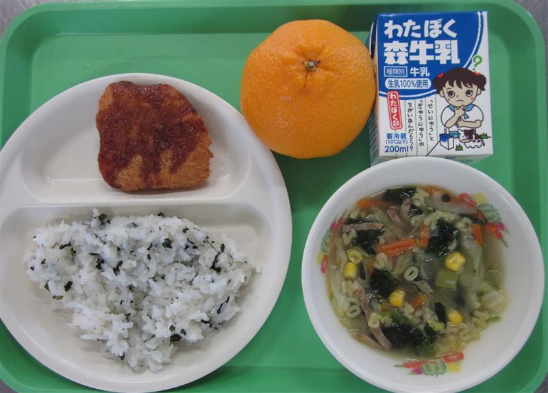 ★今日は6年生の児童が考えた献立「人気つめあわせ給食」です。おすすめのポイントは人気のものを集めて食べ残しを少なくしよう!です。果物は旬の熊本県産の「しらぬい」です。ほど良い酸味と甘みが感じられ、おいしかったです、